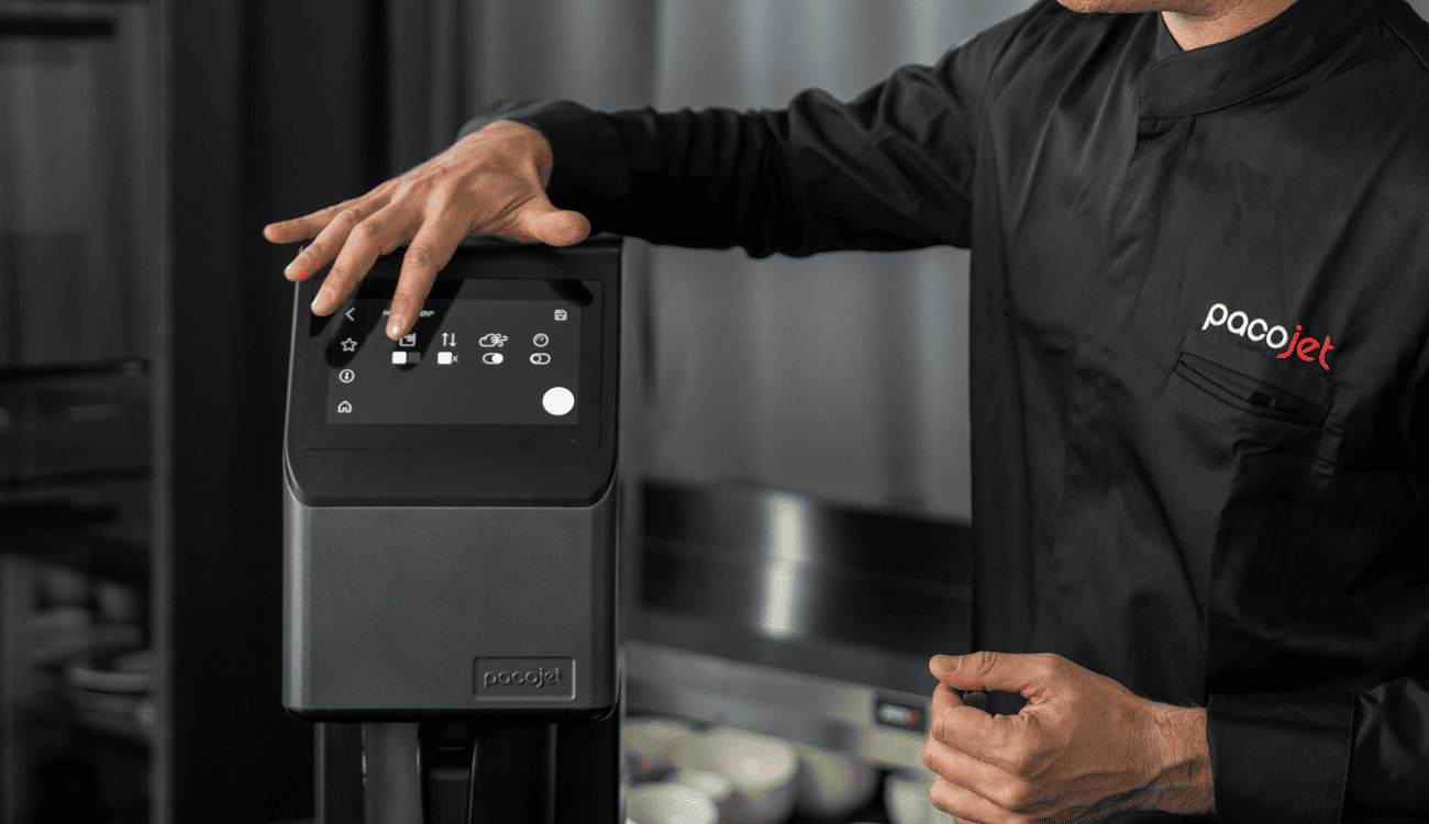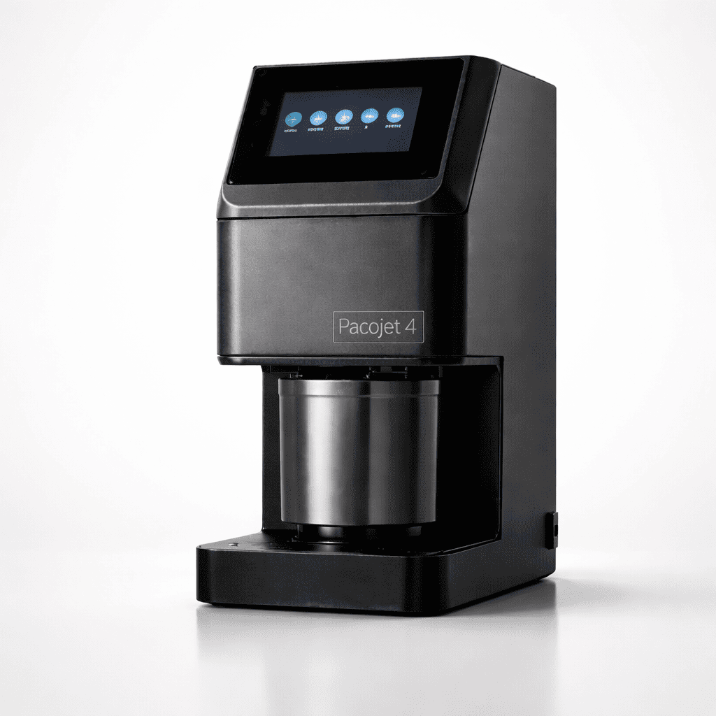 O Pacojet 4 entra como um processo — não só uma máquina: preparo → congelamento → porcionamento sob demanda.